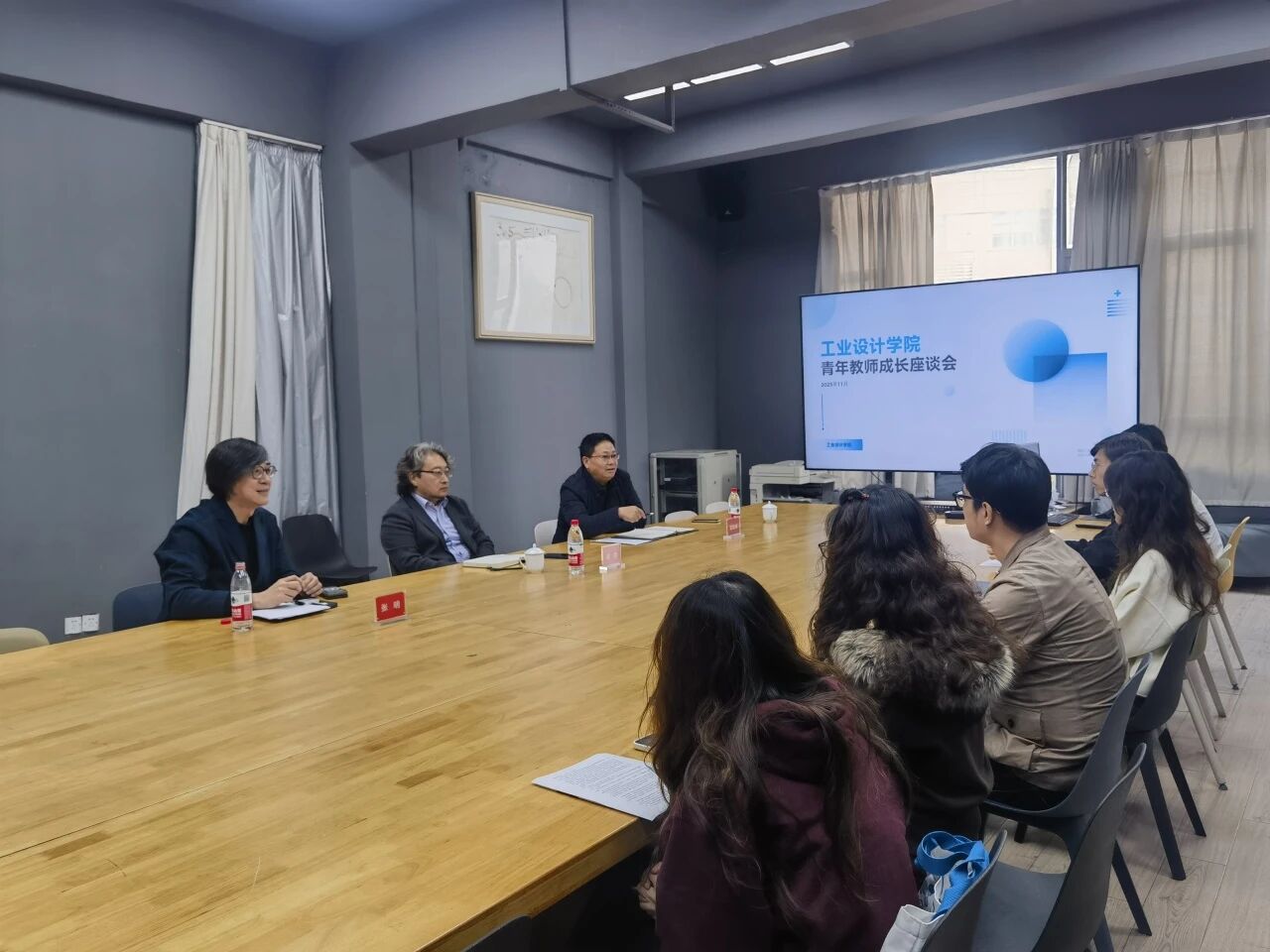 苗雨在听取青年教师介绍各自的学习经历、研究方向、工作情况和个人未来发展规划等内容后表示,工业设计学院青年教师梯队充满活力具有良好的教育背景和行业实践经验,起步基础扎实,专业有积极追求,让人特别欣喜。他说,青年教师首先要做好角色转换,明确自己的第一身份是高校教师,首要任务是做一位优秀的教师,因此不仅要做好学问,更要成为学生人生的引领者;其次要做好科研工作,在科研上追求不断突破,同时学院和职能部门也要加强有组织科研创作的引导和推进;第三要拓宽科研渠道,多元发展,要强调创新融合,加强学科交叉和跨领域艺术创作,形成自己独具特色的专业发展领域。他表示,学校将积极推进青年人才培育计划,为青年教师成长发展给予支持和帮助。